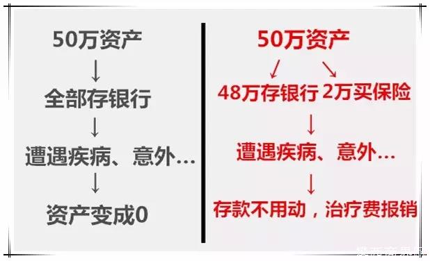 把錢(qián)放在銀行和把一部分錢(qián)放在保險(xiǎn)公司其余存銀行,到底有什么區(qū)別,一張圖就可以看明白了。