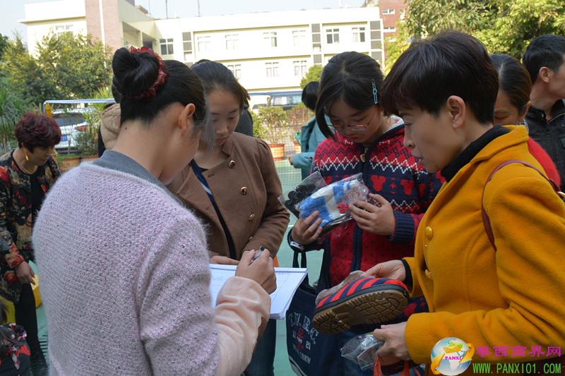 圖為攀枝花平安保險(xiǎn)公司一部經(jīng)理陳祖艷(右一)向兒童福利院負(fù)責(zé)人遞交愛心鞋