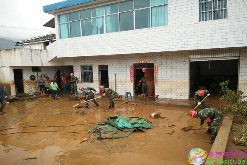 圖為:9月22日,水電官兵們?cè)谂手ㄈ屎蛥^(qū)大田鎮(zhèn)班莊村上糯河組幫助受災(zāi)村民清理廢墟,轉(zhuǎn)移物資。(武警水電三總隊(duì)九支隊(duì) 李鐵永、孫啟原、范增全 供稿)