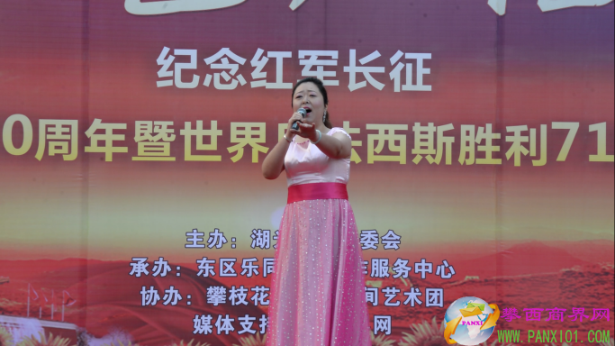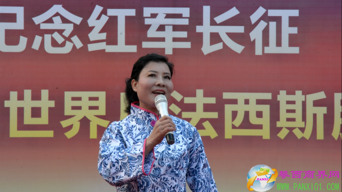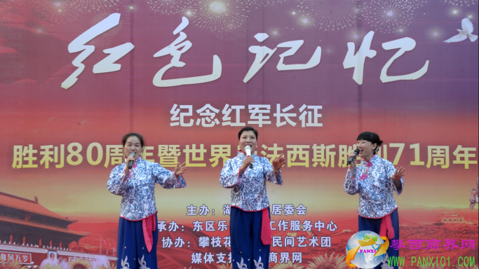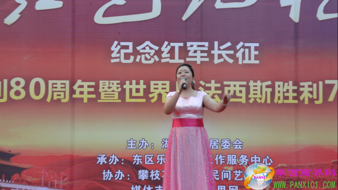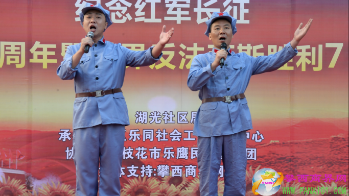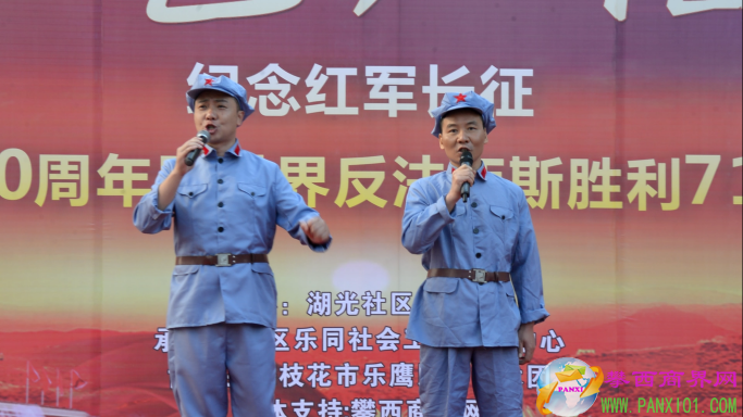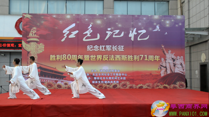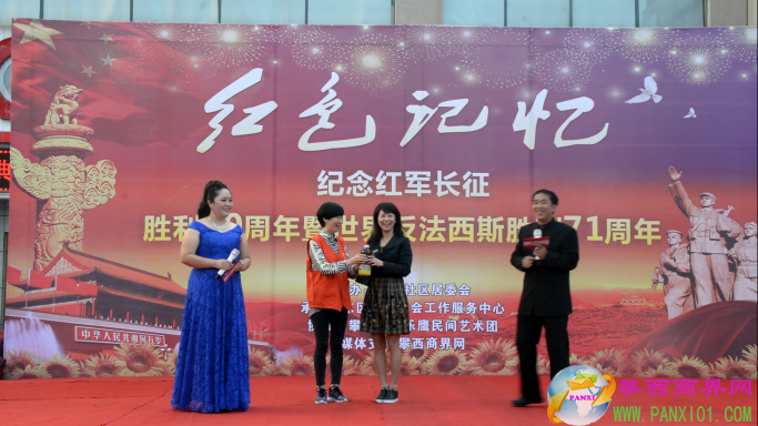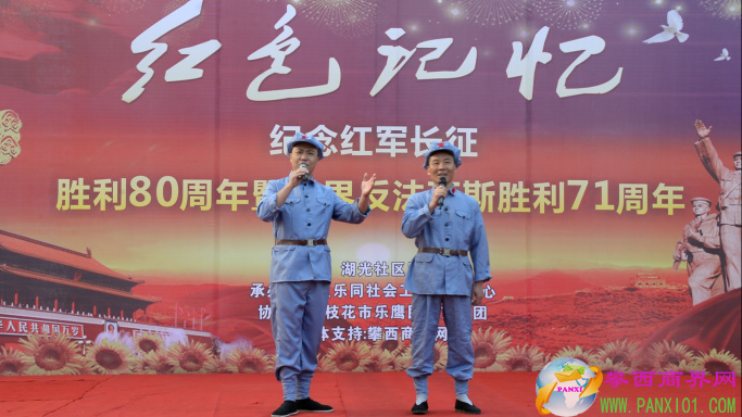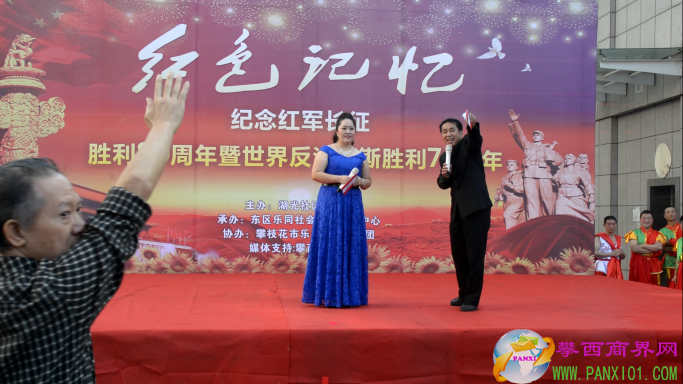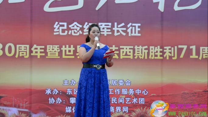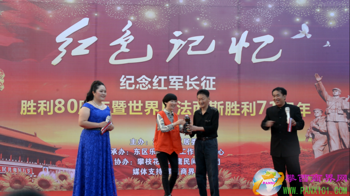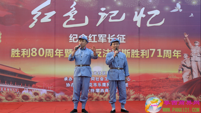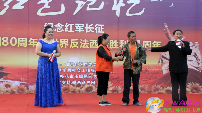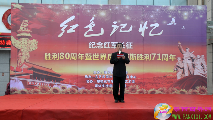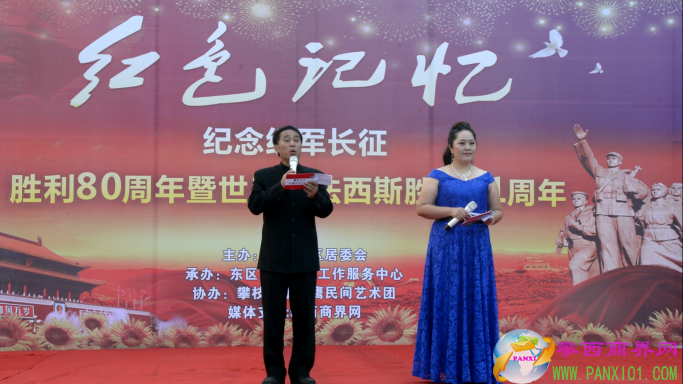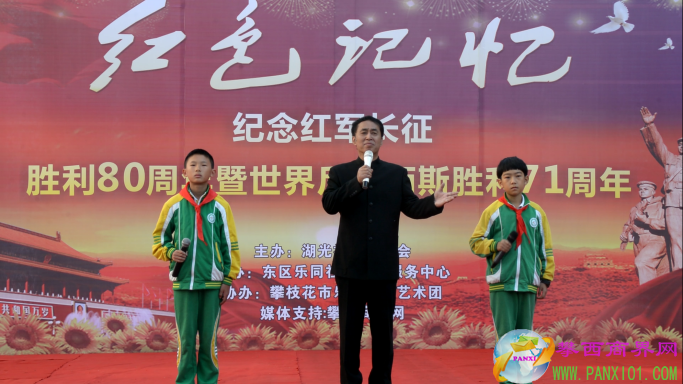 付濤:以紅色記憶為主題的紀(jì)念紅軍長(zhǎng)征勝利80周年暨世界反法西斯勝利71周年演出活動(dòng)今天在翌晨廣場(chǎng)隆重舉行了,我是今天的主持人付濤!