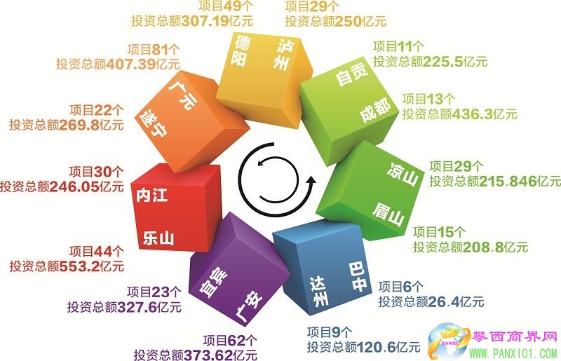 據記者測算,423個簽約項目平均單個投資9.38億元。其中,成都、自貢、宜賓、眉山、達州、樂山、遂寧等7市單個項目投資量均超10億元,尤以成都和自貢最為顯著。