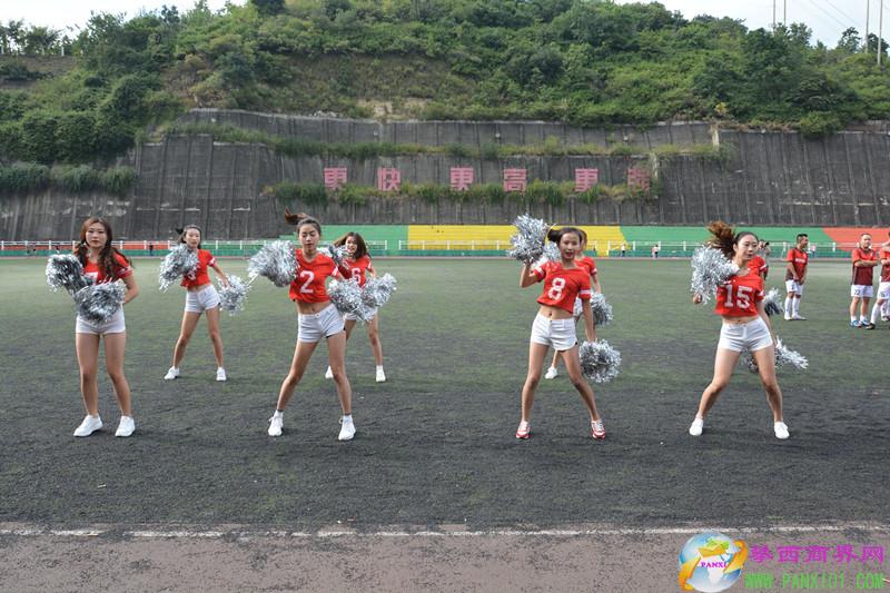 攀枝花大學(xué)團(tuán)委組織學(xué)生方隊(duì)為青商會(huì)足球隊(duì)前來(lái)助興。