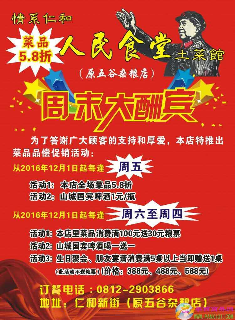 時(shí)下生意不好做,餐飲行業(yè)各家餐館使出奇招、怪招以吸引消費(fèi)者的目光。仁和土菜館就敢放大招,從12月1日起,每逢周五,土菜館全場(chǎng)菜品5.8折,簡(jiǎn)直是虧起血本做買賣;山城國(guó)賓啤酒居然還只收1元錢/瓶。筆者多次去過這家土菜館就餐,老板為人忠厚,菜品淳樸,味道厚重,鄉(xiāng)村風(fēng)味十足,服務(wù)熱情大方。