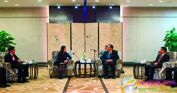 11月28日,市委書記張剡會見了來攀參加東盟國際商貿(mào)合作交流暨東盟商團入駐東盟國際商貿(mào)城活動的東盟北京委員會代表團一行。 (本報記者 宋俊康 攝)