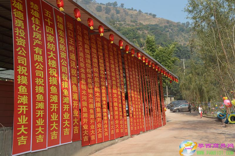 攀西商界網(wǎng)(熊燊 楊艷丹)12月10日,米易縣得石鎮(zhèn)坊田大橋彩旗飄舞,楠木河摸魚灘鞭炮雷鳴,生態(tài)餐廳兩旁墻面整齊排列著豎幅鮮紅條幅,上面寫滿了各界朋友送來的美好祝愿,身披彩帶的禮儀小姐婷婷玉立迎接八方來賓的到來,由米易縣楠木河旅游開發(fā)有限公司興辦的楠木河摸魚灘旅游項(xiàng)目經(jīng)過重新裝修后盛大開業(yè)。