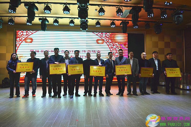 中共攀枝花市西區(qū)區(qū)委書記龍勇、攀枝花市工商聯(lián)領(lǐng)導(dǎo)、商會會長、執(zhí)行會長、監(jiān)事長一起向2016年度商會先進單位授牌并合影留念。