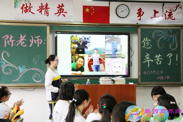 儀式結(jié)束后,各班師生回到教室,開展“班主任節(jié)”第一個活動——“我為班主任過節(jié)”主題班會。班會前,同學(xué)們收集一張張班主任與同學(xué)們相處的感動瞬間,一段段凝聚著汗水、淚水與笑容的短視頻,一個接一個地站起來向班主任表達感激之情,一時間教室真的成了一個溫暖的大家庭。