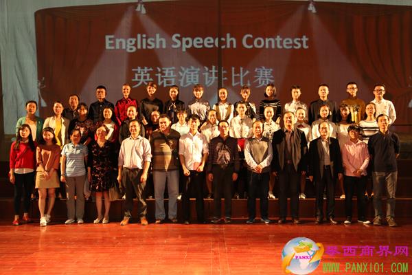 擔(dān)任今晚英語(yǔ)演講比賽評(píng)委的有市教科所英語(yǔ)教研員宋渝江老師、攀枝花學(xué)院外教Krista Pryor 、Amelia Pryor和美國(guó)朋友 Jeffrey Harpe,攀枝花學(xué)院李翔老師、攀枝花市三中高二、高三英語(yǔ)組的張燕莉、陳娜、楊衛(wèi)兵、江婕老師,以及特邀嘉賓攀枝花學(xué)院外語(yǔ)學(xué)院高朝陽(yáng)副院長(zhǎng)、市三中李剛副校長(zhǎng),高一英語(yǔ)組全體老師。