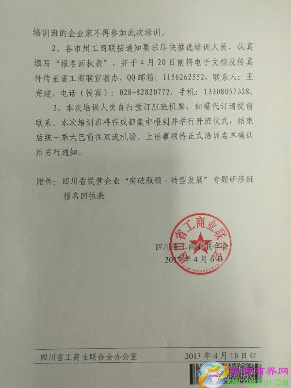 附件:關于舉辦四川省民營企業(yè)“突破瓶頸.轉型發(fā)展”專題研修班的通知