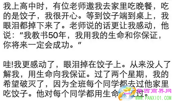 我小時候讀書差,考試都考紅字,就是考不到60分。有一年考試,我好不容易超過60分,很高興地拿回家給爸爸看。我爸爸正吃飯,他放下碗哈哈大笑。哥哥姐姐很奇怪,考這么爛還笑。
