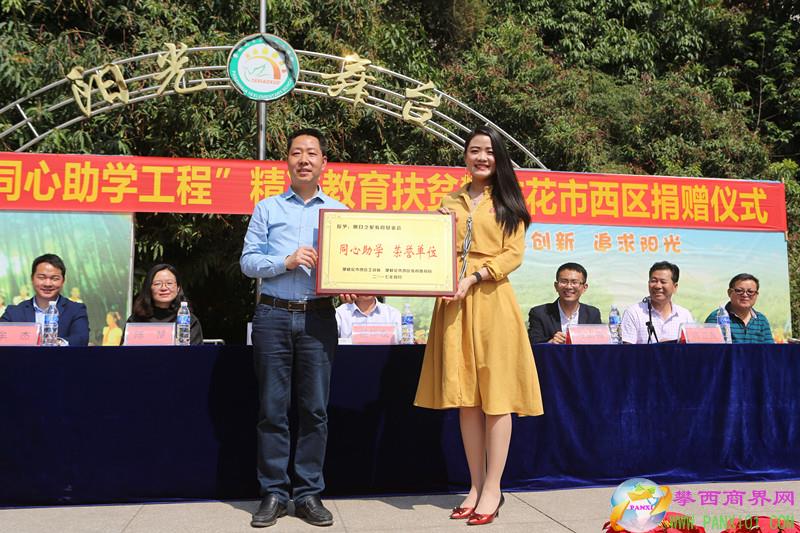 攀枝花市工商聯(lián)、西區(qū)區(qū)委、區(qū)政府和區(qū)委統(tǒng)戰(zhàn)部高度關(guān)心和重視此次活動(dòng),前期多次與省工商聯(lián)及明日之星教育基金會(huì)開展對(duì)接和溝通交流,促成了在攀枝花地區(qū)的捐贈(zèng)活動(dòng)在西區(qū)啟動(dòng)。捐贈(zèng)活動(dòng)由西區(qū)教育體育局局長(zhǎng)、黨委書記高正良主持;西區(qū)區(qū)委常委、宣傳部長(zhǎng)余萬兵代表西區(qū)向明日之星教育基金會(huì)回贈(zèng)了捐贈(zèng)榮譽(yù)銅牌;西區(qū)政協(xié)副主席、工商聯(lián)主席楊華友應(yīng)邀出席并講話。