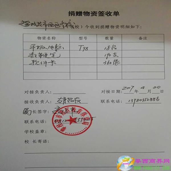 明日之星教育基金會(huì)西南分會(huì)秘書長(zhǎng)韓文女士向西區(qū)1個(gè)“班班通——光彩實(shí)驗(yàn)班”和18個(gè)教育信息化建設(shè)學(xué)校(含教學(xué)點(diǎn))捐贈(zèng)了平板電腦68臺(tái)、教學(xué)軟件視頻卡410套、多功能教鞭筆200套,本次捐贈(zèng)物資的助學(xué)物資價(jià)值32萬余元。攀枝花市第十八小學(xué)校校長(zhǎng)韓玉杰作為西區(qū)獲贈(zèng)學(xué)校代表上上臺(tái)接受捐贈(zèng)。