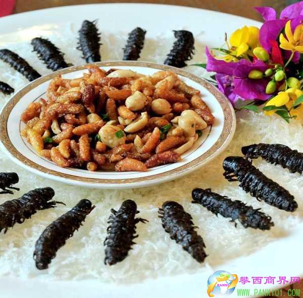 蜂蛹拼爬沙蟲。爬沙蟲有“水中人參”之稱,俗稱“安寧土人參”,是產(chǎn)于雅礱江和安寧河的一種非常稀少的水生動(dòng)物,地域性極窄,走出笮山若水,其他地方根本看不到,加之必須是鮮活的成蟲才能食用,所以不能加工成干貨保存,因此倍顯珍稀。據(jù)測(cè)定,爬沙蟲富含蛋白質(zhì)、多種氨基酸、多種微量元素及多種藥用成分。中醫(yī)認(rèn)為:其性溫味甘,具有補(bǔ)氣益腎、抑虛固本、滋補(bǔ)強(qiáng)壯之功效,堪稱藥食佳品。