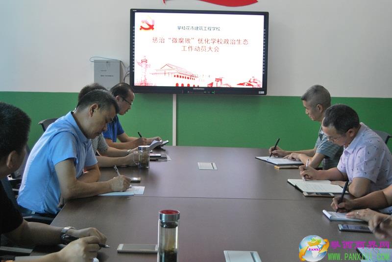 攀西商界網(wǎng)(攀枝花市建校 郭順利) 為貫徹落實市教體局《攀枝花市教育體育系統(tǒng)懲治“微腐敗”優(yōu)化教育體育政治生態(tài)工作方案》文件精神,全面落實從嚴治黨,深入推進作風建設,推動民主、廉潔、依法治校,學校于7月4日下午召開了懲治“微腐敗”優(yōu)化學校政治生態(tài)工作動員大會,學校領導班子成員、中層干部及在校教職工參加了會議,會議由黨委副書記、紀委書記鐘義良主持。