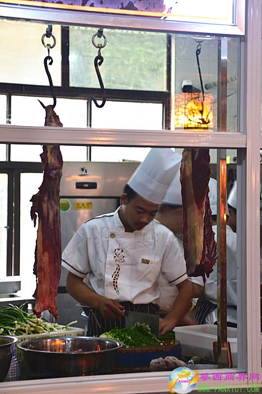 而程掌柜火鍋店的牛肉,就掛在廚房顯眼處,現(xiàn)切現(xiàn)上。