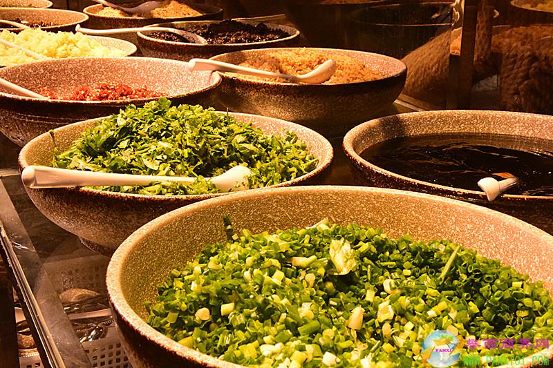 香菜、蒜泥,剁碎的大頭菜,小米辣、香蔥,炒制的青辣椒泥;酥香的花生碎,豆豉、腐乳、蠔油。香油、醋、胡海椒面,味精,雞精等等,都是自己隨性調(diào)制。