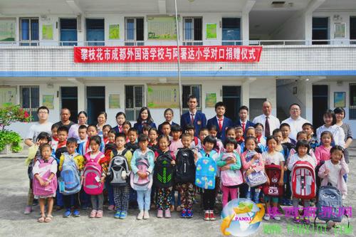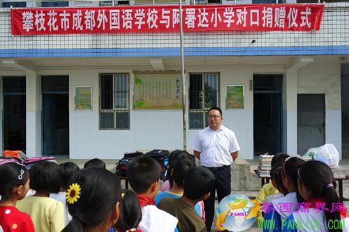 攀西商界網(wǎng)( 熊麗萍)17日下午,攀枝花市成都外國語學(xué)校校長助理楊簫帶領(lǐng)本校教職工和學(xué)生代表,來到攀枝花市阿署達(dá)小學(xué)進(jìn)行對口捐贈活動。