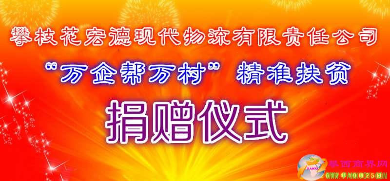 攀西商界網(wǎng)(攀枝花宏德現(xiàn)代物流有限責(zé)任公司 林春蘭)10月25日上午,攀枝花市工商聯(lián)執(zhí)委、攀枝花宏德現(xiàn)代物流有限責(zé)任公司向?qū)趲头龅呢毨Т羼R坪村捐贈道路(村道)修建物資儀式在公司一會議室舉行。