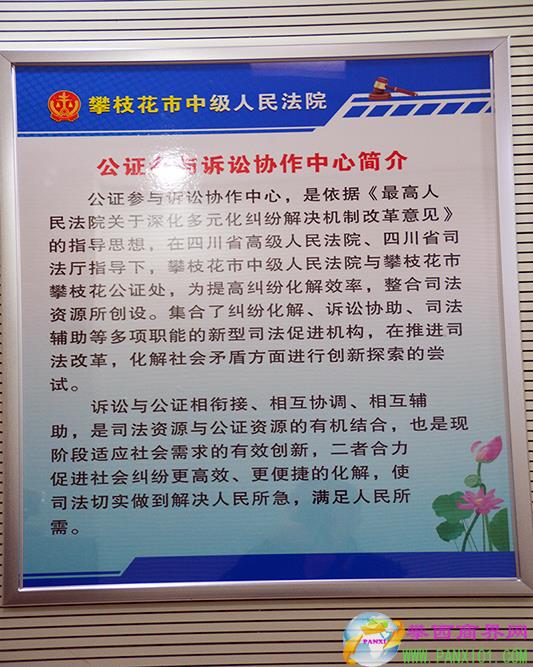攀西商界網(wǎng)(熊毅)12月26日,攀枝花市中級人民法院與攀枝花市司法局共同舉行新聞發(fā)布會宣布,攀枝花公證參與訴訟協(xié)作中心掛牌成立,公證機構(gòu)可以承接人民法院司法輔助事務(wù)。此項創(chuàng)新舉措,有利于深化多元化糾紛解決機制改革、預(yù)防和減少糾紛,推動人民法院司法輔助事務(wù)剝離。