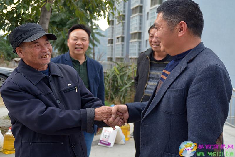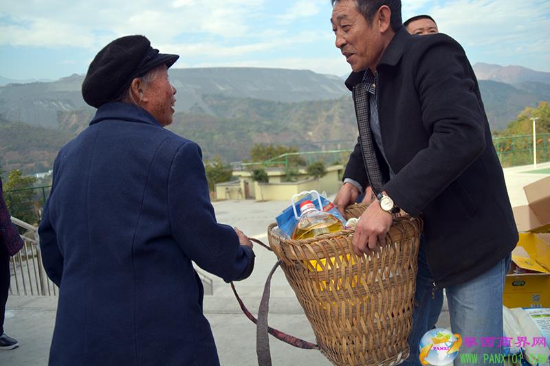 攀西商界網(邵畋嬌 周潔)12月27日,攀枝花市東區(qū)銀江鎮(zhèn)倮果村委會院壩異常熱鬧,“老人家,給你拜年啦,祝您新年好、身體好、健康長壽!”,隨著攀枝花市九榮工貿有限公司副總經理蒲洪波的一聲親切問候,倮果村一組和三組的87位60歲以上的老年人和殘障人士非常感動。