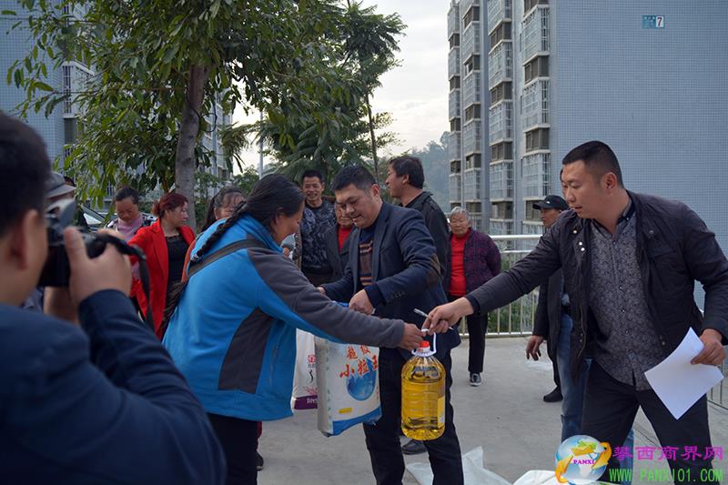 他們每人獲得了一份由攀枝花市工商聯執(zhí)委、市九榮工貿公司贈送的袋裝20斤東北大米、桶裝10斤食用油和袋裝10斤精制面粉等新年禮物。