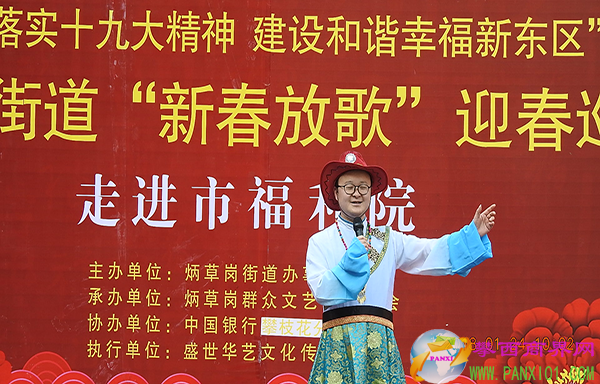 攀西商界網(wǎng)(張銘九 文 王庭祥 圖)1月24日,由炳草崗街道主辦、炳草崗群眾文藝交流協(xié)會(huì)承辦、竹湖園社區(qū)、中國(guó)銀行攀枝花分行協(xié)辦的2018迎春巡演為市社會(huì)福利院送上了一臺(tái)文藝盛宴。