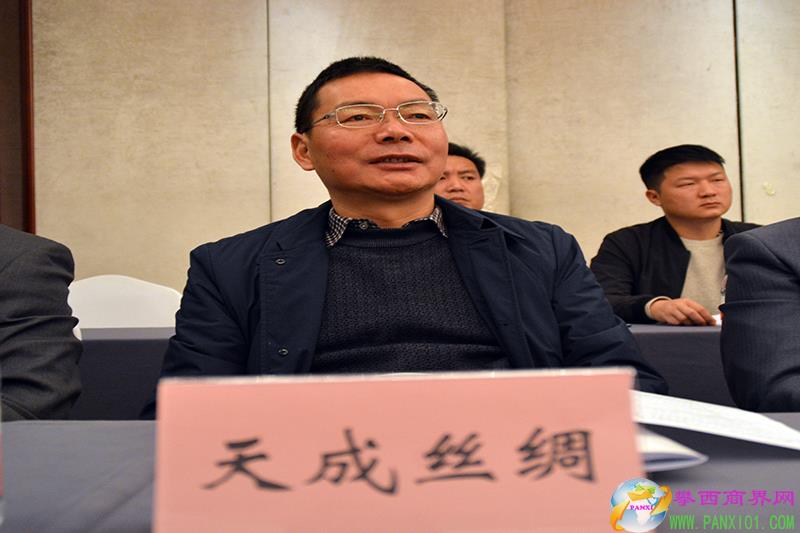 攀枝花市總商會副會長、鹽邊縣天成絲綢有限責(zé)任公司董事長黃成富在座談會上。