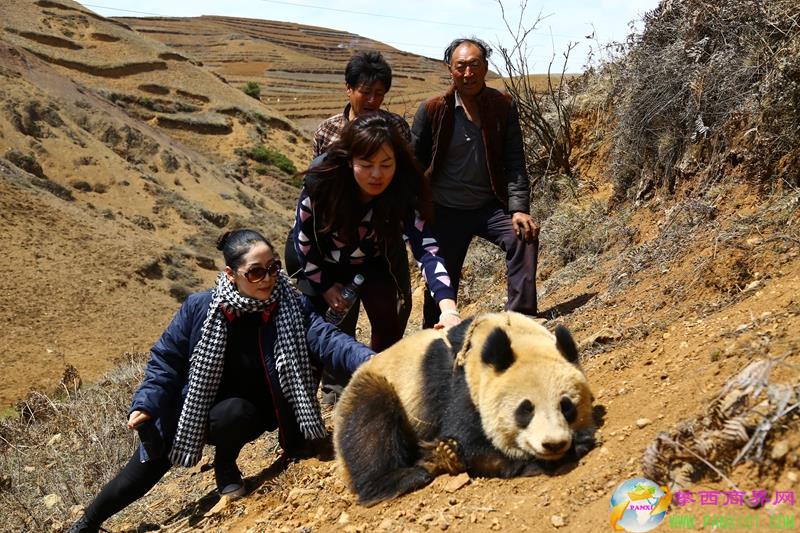 但是,大熊貓并不理會村民的好意,看到人多,似乎有些慌,在山坡上亂竄,還打滾,弄得滿身是泥。實在沒辦法,村民只得找來兩條繩子,在不傷到大熊貓的情況下,好不容易才用繩子將它拴住。