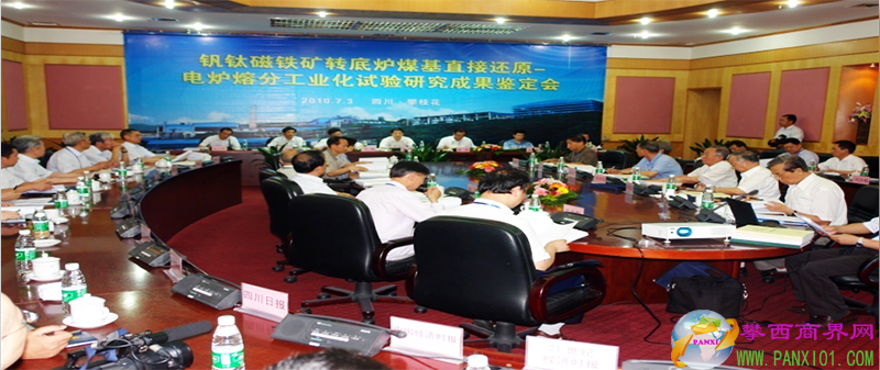 轉(zhuǎn)底爐煤基直接還原-電爐熔分研究成果鑒定會現(xiàn)場。(四川龍蟒礦冶有限責(zé)任公司 提供)