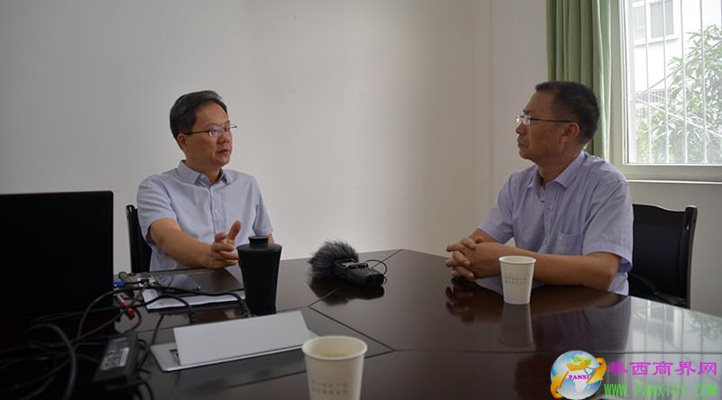 攀枝花市新聯(lián)會鹽邊分會會長、龍蟒佰利聯(lián)集團攀枝花公司副總經(jīng)理張璽(左一)接受攀西商界網(wǎng)采訪。(攝影 熊麗萍)
