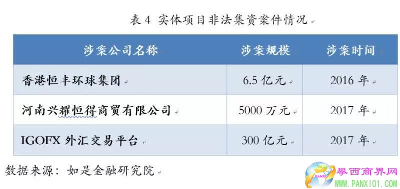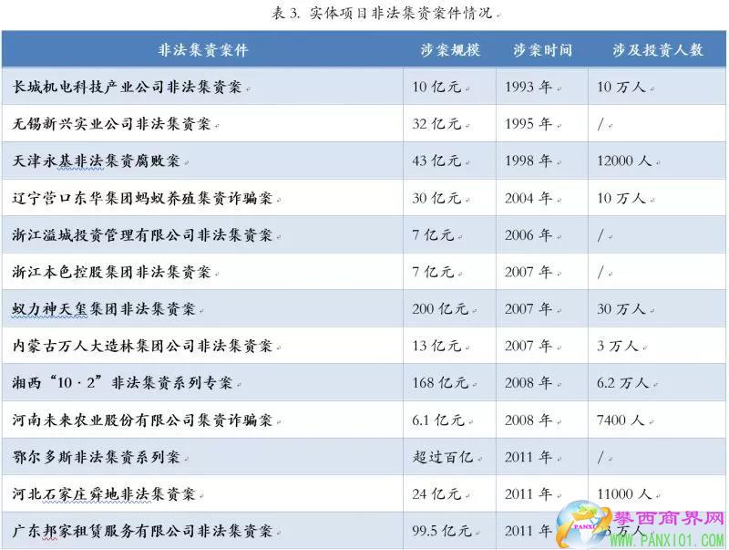 實體項目非法集資與前兩種非法集資套路相似,只是投資標的不同。實體項目非法集資表面假借實體項目進行融資,但實體項目的資質(zhì)往往是包裝出來的,金玉其外敗絮其中。實體項目非法集資具有案件多發(fā)、涉案規(guī)模大、涉及投資人數(shù)多的特點,曾經(jīng)駭人聽聞的蟻力神案、吳英案、小姑娘案、鄂爾多斯非法集資案等均在此列。