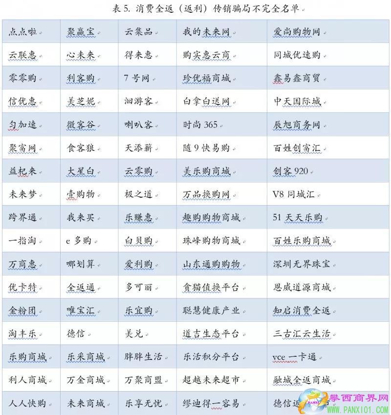 消費返利原本是一項常見的促銷手段,如今卻經(jīng)常被包裝成投資騙局。其主要特征是:通過互聯(lián)網(wǎng)第三方平臺介入商家和消費者的交易過程,許諾在平臺的消費額度部分返回,或通過現(xiàn)金消費送等額積分等形式,誘導(dǎo)消費者注冊會員消費和商家加盟平臺回流貨款。截至2017年7月,已有150余家“消費返利”傳銷騙局名單被央視曝光。