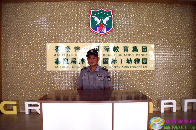 仁和區(qū)香港偉才泰悅居普惠幼兒園保安執(zhí)勤。(攀西商界網(wǎng) 熊毅 攝影)