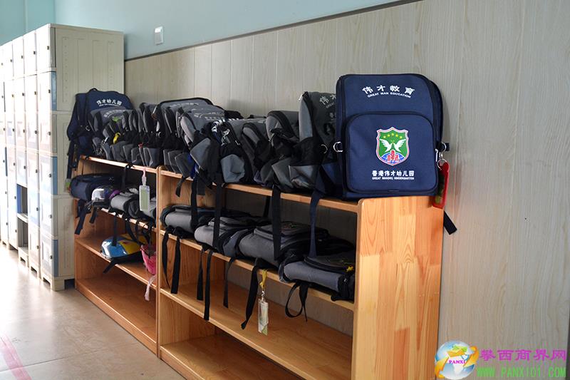 仁和區(qū)香港偉才泰悅居普惠幼兒園孩子書包一角。(攀西商界網(wǎng) 熊毅 攝影)