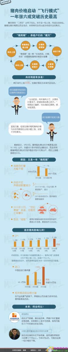 新華網(wǎng)北京4月7日電(記者 汪文品)豬肉價(jià)單月上漲30%,生豬價(jià)格創(chuàng)五年來(lái)歷史高點(diǎn),猴年開春“二師兄”出盡了風(fēng)頭。接下來(lái),豬價(jià)將何去何從?“豬周期”要持續(xù)多久?透過(guò)農(nóng)業(yè)部今日舉行的新聞發(fā)布會(huì),關(guān)于豬價(jià)你最關(guān)心的10問(wèn)題,答案都在這里。