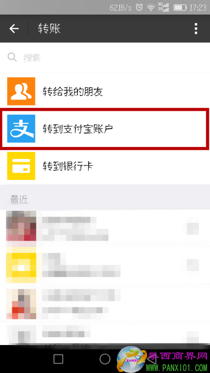 打開支付寶轉賬頁面,選擇轉到支付寶賬戶