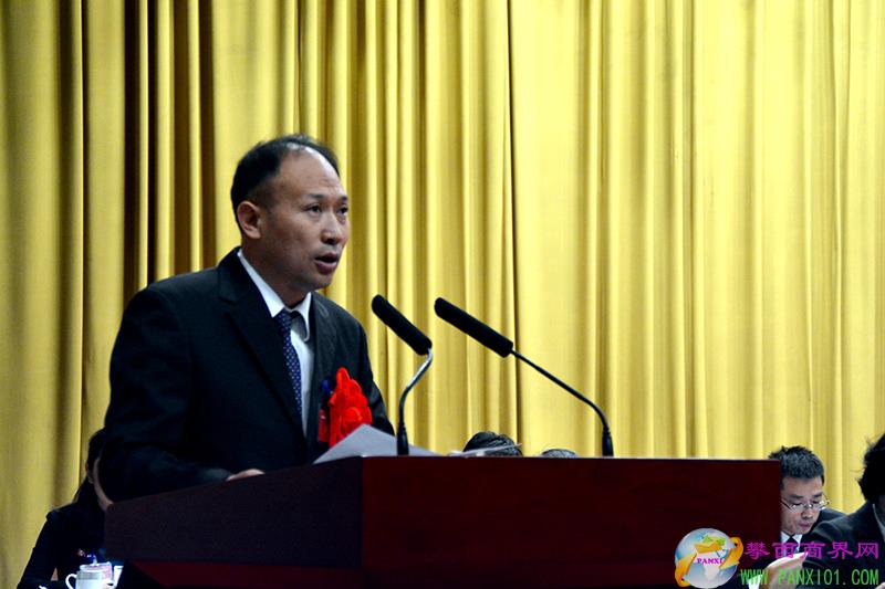 四川安寧鐵鈦股份有限公司董事長羅陽勇在攀枝花市民營經(jīng)濟(jì)健康發(fā)展大會上發(fā)言。(攀西商界網(wǎng) 熊 毅 攝影)