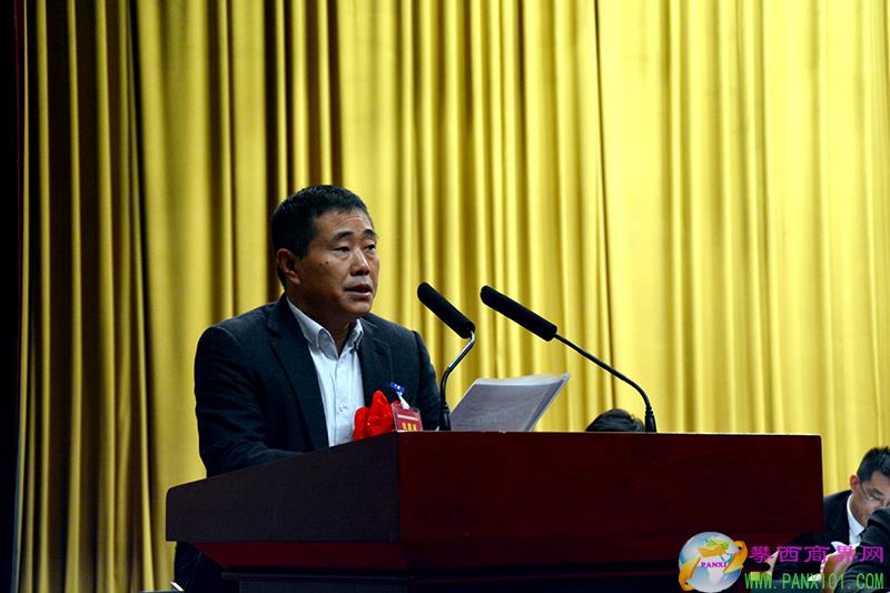 攀枝花恒力(集團(tuán))投資有限公司的董事長(zhǎng)彭宏在全市民營(yíng)經(jīng)濟(jì)健康發(fā)展大會(huì)上發(fā)言。(攀西商界網(wǎng) 熊毅 攝影)