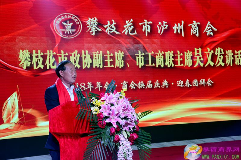 攀枝花市政協(xié)副主席、市工商聯(lián)主席、市總商會會長吳文發(fā)向攀枝花市瀘州商會順利換屆表示祝賀。他希望瀘州商會全體會員在羅江會長的帶領(lǐng)下,發(fā)憤圖強,繼續(xù)努力,爭取把攀枝花市瀘州商會建設(shè)成全市一流商會、全國“四好商會”。
