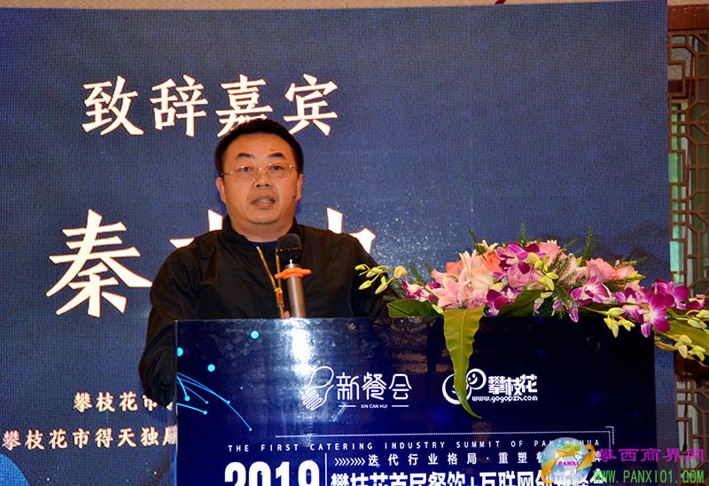 市工商聯(lián)副主席、市餐飲烹飪協(xié)會會長、攀枝花市得天獨(dú)厚餐飲集團(tuán)有限公司董事長秦吉中出席會議并作交流發(fā)言。
