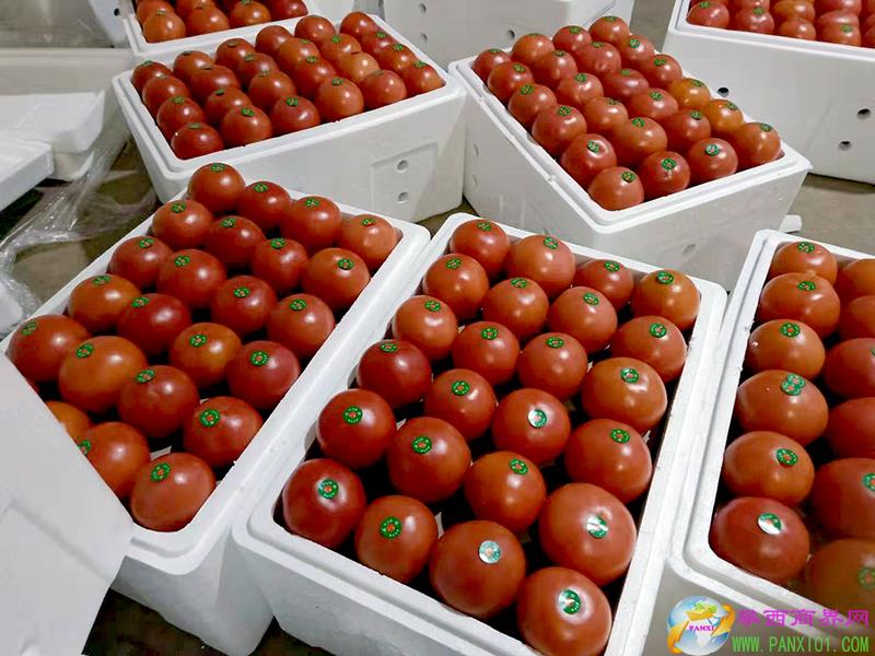 老板們收購來的番茄,再經(jīng)手工嚴(yán)格挑選出精品,碼放整齊,貼上商標(biāo)裝箱,然后裝車,最后奔向遙遠(yuǎn)路程,到達(dá)目的地,讓各地的人們,分享米易陽光早早成熟的豐收之果。