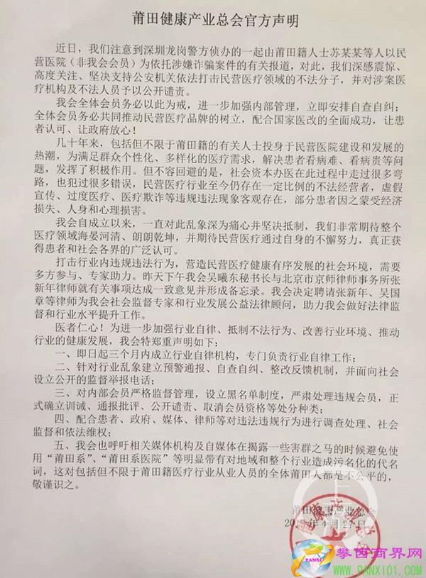 (原題為《莆田健康產(chǎn)業(yè)總會強硬發(fā)聲:要求6000余家醫(yī)院立即自查》)
