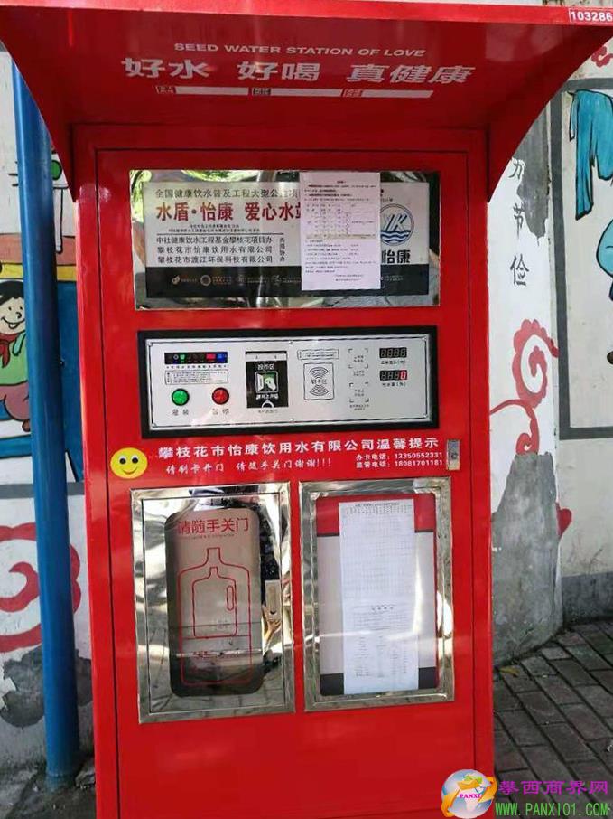 攀西商界網(wǎng)報(bào)道(記者 熊毅) 水是生命之源泉,也是人類(lèi)最必需的營(yíng)養(yǎng)素之一。人可數(shù)天無(wú)食,不可一天無(wú)水。近日,攀枝花渡江環(huán)??萍脊九c攀枝花怡康飲用水公司以“水”聯(lián)姻,共同為向陽(yáng)五村社區(qū)居民解決飲用水配套設(shè)施,在向陽(yáng)路向陽(yáng)門(mén)崗附近試點(diǎn)安裝“愛(ài)心水機(jī)”,讓群眾享受便捷的生活服務(wù)。