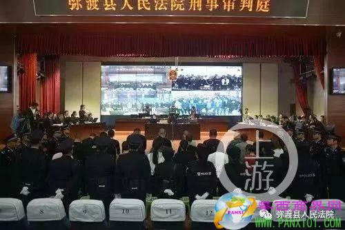 ▲鄧?yán)聢F(tuán)伙受審現(xiàn)場(chǎng)。彌渡縣人民法院