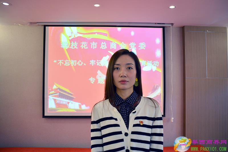 攀枝花市南充商會(huì)黨支部白芳表示:不忘初心、牢記使命就是要牢記我們黨從成立時(shí)起把為社會(huì)主義、共產(chǎn)主義而奮斗確定為自己的綱領(lǐng),牢記共產(chǎn)主義遠(yuǎn)大理想,堅(jiān)持全心全意為人民服務(wù)的根本宗旨,一步一個(gè)腳印,踏踏實(shí)實(shí)走好每一步,用真心、愛心、恒心做好本職工作。