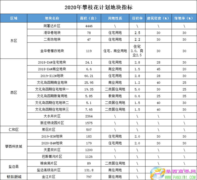 東區(qū)重點(diǎn)推介片區(qū)——阿署達(dá)片區(qū)是市委市政府重點(diǎn)打造的攀枝花“花園式會(huì)客廳”,是主打康養(yǎng)、旅游和娛樂(lè)為一體的綜合拓展區(qū)。片區(qū)位于攀枝花城區(qū)東南部,區(qū)域內(nèi)花舞人間景區(qū)已初具規(guī)模。區(qū)域緊鄰市中心,距G5京昆高速攀枝花出口僅2公里、距攀枝花機(jī)場(chǎng)約7公里,目前社區(qū)巴士可直達(dá)市區(qū),公共交通便捷,配套設(shè)施完善,其中龍崗、小壩塘共規(guī)劃有商住用地495畝,土地利用條件成熟,下一步將根據(jù)市場(chǎng)情況擇機(jī)推出。2020年,東區(qū)擬上市三宗土地。分別為:二街坊地塊,面積約47畝,規(guī)劃用途為住宅用地,容積率2.2。港華巷地塊,面積約78畝,規(guī)劃用途為住宅用地,容積率2.5。金華巷地塊:面積約119畝,規(guī)劃用途為住宅、商業(yè)用地,其中住宅容積率3.0,商業(yè)容積率2.5。