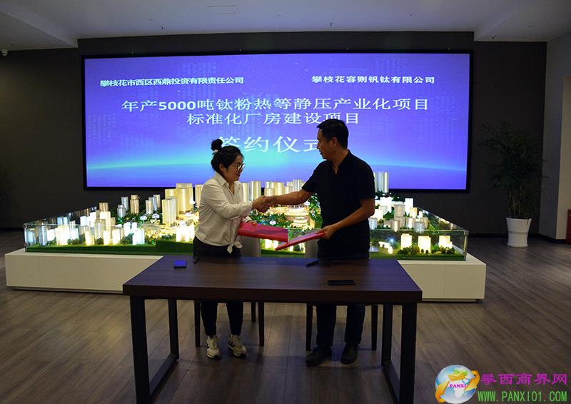 攀西商界網(wǎng)報道(記者 余付蓮)為推進(jìn)攀西國家戰(zhàn)略資源創(chuàng)新開發(fā)試驗區(qū)建設(shè),深度開發(fā)利用海綿鈦,實現(xiàn)釩鈦資源優(yōu)勢向產(chǎn)業(yè)優(yōu)勢的轉(zhuǎn)變,促進(jìn)西區(qū)產(chǎn)業(yè)轉(zhuǎn)型升級。9月22日,攀枝花市西區(qū)西鼎投資有限責(zé)任公司與攀枝花容則釩鈦有限公司在西區(qū)星瑞時代廣場市西城中央商務(wù)區(qū)創(chuàng)新創(chuàng)業(yè)孵化園舉行年產(chǎn)5000噸鈦粉熱等靜壓產(chǎn)業(yè)化項目標(biāo)準(zhǔn)化廠房建設(shè)簽約儀式。