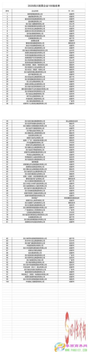 9月29日,四川省工商聯(lián)在上規(guī)模民營企業(yè)調(diào)研基礎(chǔ)上,發(fā)布“2020四川民營企業(yè)100強”榜單及“2020四川民營企業(yè)100強調(diào)研分析報告”。榜單顯示,新希望集團、通威集團、藍光投資控股集團位居前三。