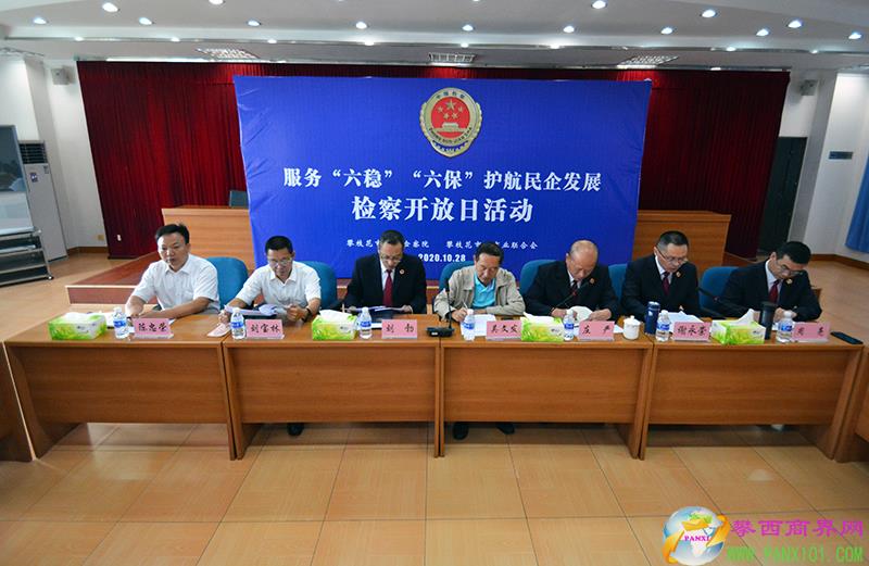 攀西商界網(wǎng)報道(記者 熊毅 圖/文)為深入學(xué)習(xí)貫徹習(xí)近平總書記關(guān)于民營經(jīng)濟(jì)重要講話和指示精神,更好地為全市民營經(jīng)濟(jì)發(fā)展提供優(yōu)質(zhì)檢察產(chǎn)品和法治保障,10月28日,攀枝花市人民檢察院與攀枝花市工商業(yè)聯(lián)合會在市檢察院會議室共同舉辦以“服務(wù)’六穩(wěn)’’六保’ 護(hù)航民企發(fā)展”為主題的檢察開放日活動。