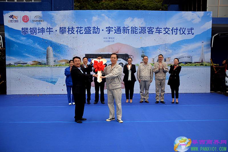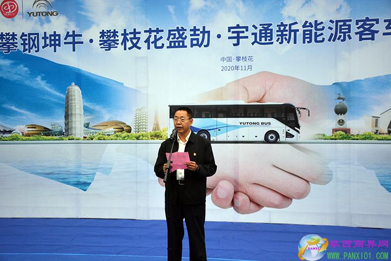 市工商聯(lián)黨組成員、副主席、市總商會黨委書記劉寶林,鄭州宇通客車股份有限公司攀西經(jīng)理薛甲秀,攀枝花市盛劼勞務(wù)服務(wù)有限公司法定代表人周業(yè)俊,攀鋼集團攀枝花坤牛物流有限公司法定代表人許可出席并致辭。市工商聯(lián)秘書長陳忠榮出席客車交接儀式。
